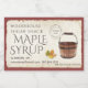 Vintage design with parchment background with a red brown border. Vintage maple sap bucket and autumn sugar maple leaf. Vintage 'postmark' updated with grade of maple syrup or collection date (SPRING 202X) or " EST. 2016" Add your location and contact info and maple syrup volume.