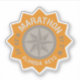 Marathon, Florida Keys design with the latitude and longitude and compass rose nautical navigation symbol in shades of grey on an orange background.
