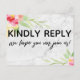 Marble and Boho Flowers Menu Choice RSVP Postcard