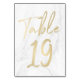 Add a stylish touch to your wedding reception with custom table cards. The wedding table cards feature a white marble background and a faux gold trendy script font. Additional numbers can be found in the collection below.