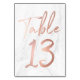 Add a stylish touch to your wedding reception with custom table cards. The wedding table cards feature a white marble background and a faux rose gold trendy script font. Additional numbers can be found in the collection below.
