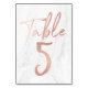 Add a stylish touch to your wedding reception with custom table cards. The wedding table cards feature a white marble background and a faux rose gold trendy script font. Additional numbers can be found in the collection below.