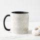 Modern, black and white marble in combination with gold custom casual font name. Simple, minimalist coffee mug, with giant initials