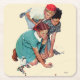 Artist: Norman Rockwell | Girl in pigtails is beating boys at marbles