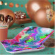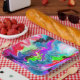 Purple, Lime green, red, white and blue colourful swirls of colours marble fluid digital art.