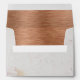 This elegant envelope, recommended for a modern wedding invitation, but that can be used on any occasion, especially for invitations, has white marble texture outside, faux metal copper texture inside and the return address printed with red-brown letters like the colour of the copper, the Name being written in an elegant calligraphic script.
