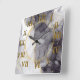 This beautiful roman numeral wall clock was designed with an elegant grey, black, and white marble look with hints of gold and gold roman numerals. Add this beauty to your decor or purchase for a loved one. This clock makes for a great wedding or anniversary gift.