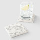This stone coaster features a sophisticated white marble design with soft grey veining throughout. The natural marble pattern is elegantly detailed, emphasizing a luxurious yet understated aesthetic that blends seamlessly with modern, classic, or minimalist decor. Crafted for durability, the coaster reliably protects surfaces from moisture and heat, making it ideal for daily use at home or in the office. Its clean, neutral palette allows it to complement a wide variety of settings while adding a refined touch to any tabletop.