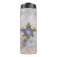 Faux gold foil marble tumbler with a monogrammed purple jewel.