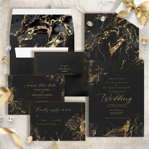 Marble Glitter Wedding Black GoldDesigned by Barbara at Array Stores
