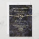 Elegant, boho, luxurious, modern abstract marble geode glitter gold and black wedding invitation with monogram back, trendy calligraphy script and faux gold rope heart.