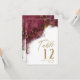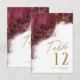 An abstract background reminiscent of marble in shades of burgundy veined with glittering gold is the backdrop for elegant script text and modern design layouts in the pieces of this beautiful wedding suite. The wedding table number card shown here features the above plus optional flowing script text of Table' and a template to add the bride and groom's names and wedding date. Search ID644 to see all the coordinating pieces in this set.