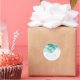 An abstract background reminiscent of marble in shades of soft teal through deep aqua blue and veined with glittering silver is the backdrop for elegant script text and modern design layouts in the pieces of this beautiful wedding suite. The wedding favour sticker shown here features the above plus optional flowing script text of 'Thank You' and a template to add the bride and groom's names and wedding date. Search ID644 to see all the coordinating pieces in this set.