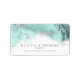 An abstract background reminiscent of marble in shades of soft teal through deep aqua blue and veined with glittering silver is the backdrop for elegant script text and modern design layouts in the pieces of this beautiful wedding suite. The wedding address label shown here features the above plus a template to add the bride and groom's names and wedding address. Search ID644 to see all the coordinating pieces in this set.