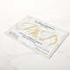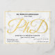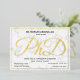 A PhD graduation party invitation with gold foil, black text, and a marble background. Simply add your information, add this invitation to your cart, and celebrate this major accomplishment.
