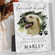 Elegant pet memorial photo plaque featuring a faux marble background, a picture of your pet dog or cat, paw prints, the saying 'forever missed' that incorporates a heart centre, their name, birth/death dates, and the sympathy saying 'if I could of saved you, you would of lived forever'.