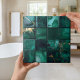 This luxurious ceramic tile design showcases rich emerald green marble veined with shimmering gold for an elegant, high-end look. The pattern exudes depth and sophistication, blending natural stone artistry with a modern, high-gloss finish. Ideal for kitchen backsplashes, bathroom walls, fireplace surrounds, or accent installations, this design is part of a coordinated trio that can be mixed and matched for a rich, natural-looking variation across multiple tiles, perfect for coastal modern, contemporary, or upscale classic décor. Search ID1186a, b and c to see each of the variations. Note: design contains generative content.