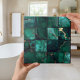 This luxurious ceramic tile design showcases rich emerald green marble veined with shimmering gold for an elegant, high-end look. The pattern exudes depth and sophistication, blending natural stone artistry with a modern, high-gloss finish. Ideal for kitchen backsplashes, bathroom walls, fireplace surrounds, or accent installations, this design is part of a coordinated trio that can be mixed and matched for a rich, natural-looking variation across multiple tiles, perfect for coastal modern, contemporary, or upscale classic décor. Search ID1186a, b and c to see each of the variations. Note: design contains generative content.
