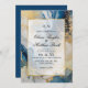 Modern stylish wedding invitation marble blue with gold dust on with a gold ink pour effect (the gold is a digital effect, not real foil!) and modern calligraphy. Classy and elegant, simple and modern invitation.