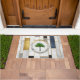 Marble Modern Tropical Palm Family Name Doormats features a luxury marble geometric pattern in white, grey, blue and gold with a palm tree in the centre and personalised with your family name. Fabulous for gifts and outdoor decor. Designed by © Evco Studio www.zazzle.com/store/evcostudio