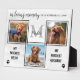 Celebrate your best friend with a custom dog memorial photo collage plaque in a modern white marble design. This unique dog photo collage memorial plaque is the perfect gift for yourself, family or friends to honour those loved .