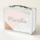 Modern faux Marble, rose gold, grey and blush pink lunch box. With space for a name. Background colour and text colour can be altered. Part of a modern collection.