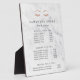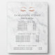 Elegant plaque with easel displays your aesthetician or makeup artist services or price list in charcoal grey lettering on a luxe white marble background adorned with a pair of lush eyelashes and eyebrows in faux rose gold foil. Includes three customisable headings and body text fields. To adjust layout, enter your text and then use the Customise function to change the positioning and font sizes.