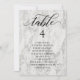 Modern and elegant design printed Marble Black Calligraphy Script Seating Plan Individual Table Card that can be customised with your text and add each table number card to your cart, one by one. Please click the "Customise it" button and use our design tool to modify this template. Check out the Graphic Art Design store for other products that match this design!