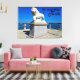 This gorgeous Stretched Canvas Print features the photo image of one of two gallant white marble lions that stand guard over the entrance to the Bridge of Lions which connects downtown "Old City" Saint Augustine with Anastasia Island. The large carrera marble lions are named “Firm” and “Faithful,” and were originally commissioned by Italian sculptor F. Romanelli in 1927, and later restored. The background features a stunning azure blue sky and numerous sailboats and watercraft anchored in Matanzas Bay, which is part of the Intracoastal Waterway. The text on the Canvas Print may be changed or deleted at no additional cost. Photography by Glenda Motsavage, a Florida-based travel writer and author.