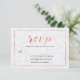 This stylish RSVP card design features chic copper typography with a marble textured background. More matching items available at my shop to complete your wedding suite.