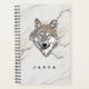 Modern grey and brown illustration of wolf head over beige marble stone texture with a brown and grey grain. Optional monogram