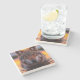 This marble stone coaster is shown with a photo print of a wild wolf in the river.