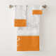 Marble Style Orange White Monogram Initial Bathroom Bath Towel Set