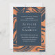 Elegant marbled copper on navy blue background, wedding invitation. Customise text, font style, colour and size.