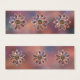 A pale but colourful fractal design like star clouds in outer space or multi-coloured marble with shades of pink, mauve, peach, and blue. The background is a mottled texture like a distant nebula, and the piece is accented by a gold-framed starburst medallion as if inlaid with gold filigree. Completing the picture are smooth opal-like jewels and faceted gemstones inset in a golden floret.