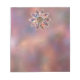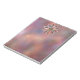 A pale but colourful fractal design like star clouds in outer space or multi-coloured marble with shades of pink, mauve, peach, and blue. The background is a mottled texture like a distant nebula, and the piece is accented by a gold-framed starburst medallion as if inlaid with gold filigree. Completing the picture are smooth opal-like jewels and faceted gemstones inset in a golden floret.