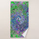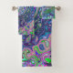 Marbled Lime Green and Purple Abstract Retro Swirl Bath Towel Set