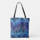 MARBLED PAPER,ABSTRACT BLUE PEACOCK PATTERN,SWIRLS TOTE BAG