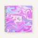 Design features a multicolor marbled swirl in a pink, purple and turquoise colour scheme. Personalise with initials.