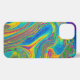 Marbled poured paint abstract pattern in psychedelic shades of bright blue, turquoise, hot pink, green and bright yellow.