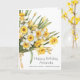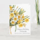 This elegant birthday card features a watercolor bouquet of daffodils and jonquils, the official March birth flowers, symbolizing renewal, joy, hope, and new beginnings.