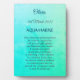 Lovely personalised March Birthstone Aquamarine themed Table top Plaque with easel Gift. Poem describes the metaphysical properties of the Aquamarine Crystal.