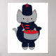 Are you looking for a gift for the drummer in your life? This poster features a cute gray cat playing the snare drum while wearing a navy blue and red marching band uniform.