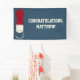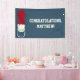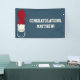 Add your own message to create a custom banner that's perfect for marching band members or anyone who loves a parade. This banner features a simple illustration of a marching band hat with feathers on the top in cream or ivory and dark red, set against a navy blue background.