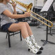 Are you looking for a gift for the trombone player in your life? These socks have a fun pattern featuring a white rabbit holding a trombone while wearing a green and gold marching band uniform.