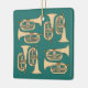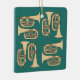 Tan marching baritone horns in a crosshatch pattern against a green background is a unique musical instrument design for low brass musicians, music teachers and school students in marching band.