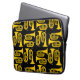 The sleeve is made of nice feeling material and seems very durable. I'm not sure how easy it'll be to clean, but the construction seems sound and the fabric is quick thick. I also like the double zipper. The printing is lovely and appears durable. The white on black contrast is nice, and the design very elegant.