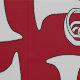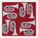 Grey marching baritone horns in a crosshatch pattern against a dark red background is a unique musical instrument design for low brass musicians, music teachers and school students in marching band.