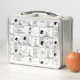 This is a standard metal lunchbox that appears to work just fine. We designed this box ourselves with an uploaded photo and custom text on the front and back. It looks absolutely beautiful except the front of the lunchbox is not centered like it shows in the photo. The print borders don't align with the inset flat part of the box where the preview photo online showed it perfectly centered in there. The back looks nice and centered though.