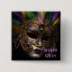 This button pin is shown in a festive Mardi Gras mask print.